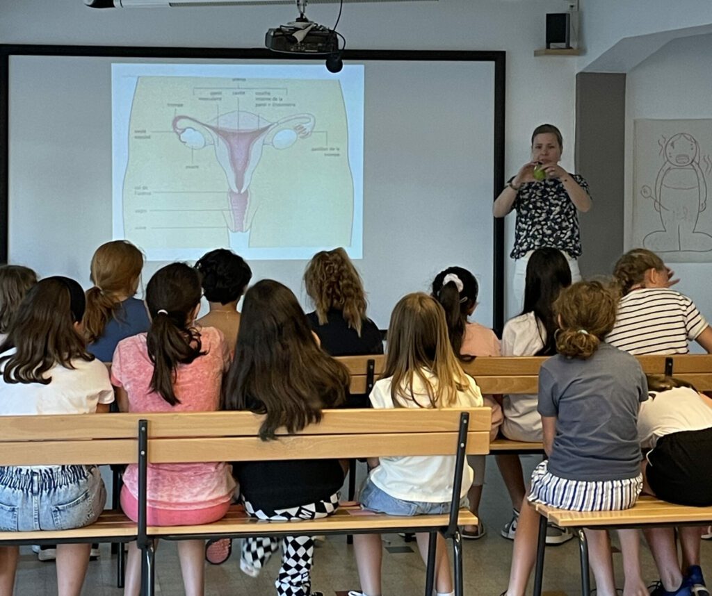 Tout a commencé au début de l’année dernière, quand Christina Leal – sophrothérapeute et psychopédagogue – et Virginie Keller – experte en éducation menstruelle – ont élaboré un projet sur l’éducation au cycle menstruel : Kiffe ton corps. Quelques mois plus tard, en partie pour faciliter sa réalisation, elles créent l’association La Place, à Colmar. Christina en devient la présidente et Virginie, la vice-présidente. Kiffe ton corps a donc pour objectif de sensibiliser les garçons et les filles au fonctionnement du cycle menstruel, de la primaire au lycée. Cela passe par plusieurs ateliers. Le premier est à destination des classes de CM2 et de 6ème. Il se nomme Kiffe tes premières règles et dure 2h. « À partir de la 5ème, nous proposons l’escape game Kiffe ton cycle : 1h de jeux, puis 1h d’échanges avec les élèves. Les jeunes s’amusent tout en découvrant le cycle menstruel. Ensuite, nous avons l’atelier Kiffe ton cycle, pour les adultes », détaille la vice-présidente.