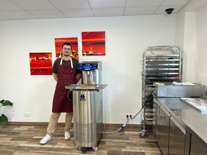 La chocolaterie Millet est située rue de l’erlenbad, non loin d’une école et d’un parking où stationnent touristes et caravanes. Idéal pour attirer des clients. Elle a ouvert le 23 juillet. C’est Romain Millet, 26 ans, qui en est à l’origine. À l’intérieur, sur la droite, des étagères exposent ses créations chocolatées et gourmandes. En face, sur la gauche, assises et tables se succèdent. Car la chocolaterie Millet, c’est aussi un salon de thé : « Ici, c’est une simple chocolaterie vouée à grandir avec un salon de 12 places intérieures, convivial et chaleureux », explique-t-il avec humilité. Romain Millet a effectué un apprentissage en 2020 puis, après quelques missions dans diverses structures, il a décidé de se lancer malgré son jeune âge : « Et en même temps je suis dans le métier depuis 10 ans. Donc c’était une évidence », soutient-il.