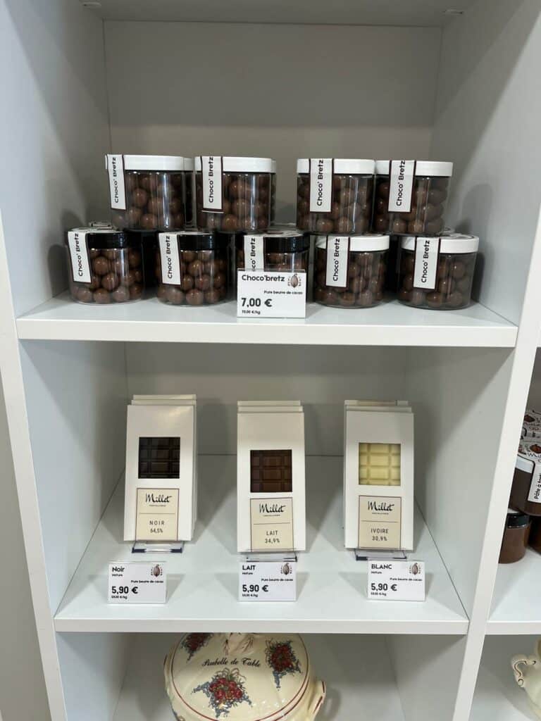 Concernant ses chocolats, il fait du maison dès que possible. « Tout ce qui est praliné, tablette, c’est le cas. J’ai même pris des machines pour le praliné pour broyer le fruit sec à la base ». C’est d’ailleurs l’un de ses produits phares : de petites billes enrobées d’une coque croquante de caramel et de fruit sec, avec à l’intérieur, du praliné maison créant un jeu de texture des plus succulents. Un produit à l’image de son magasin, simple, local et efficace.