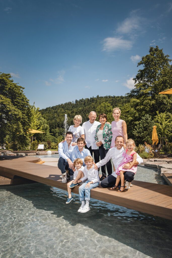 La famille Goetz au complet, avec Gérard et ses deux filles au milieu. / ©HÔTEL JULIEN