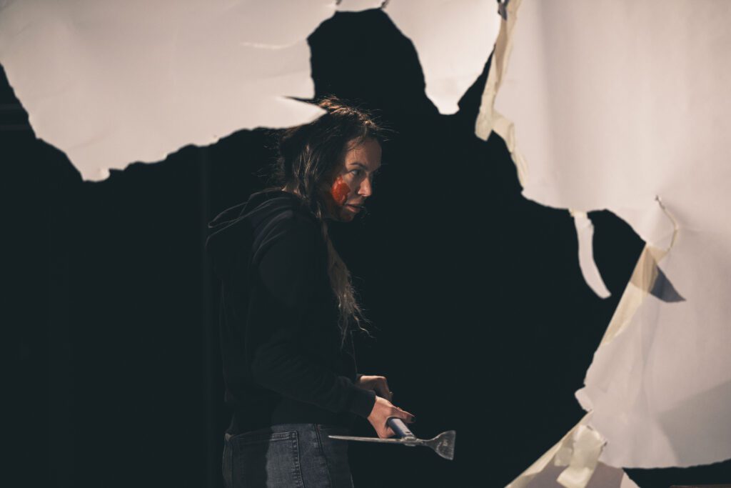 L’écriture est littéraire, le récit intime, celui d’une femme transformée parlant d’une expérience traumatique. Cette proposition entre pleinement dans la vision de la metteuse en scène. Une vision qu’elle nomme le théâtre du peu : « C’est une forme esthétique, un théâtre simple fait de peu de choses, du trois fois rien », explique-t-elle. Ainsi, dans Croire aux fauves, le décor est réalisé avec très peu de choses, comme du papier. Cette pièce, comme ses soeurs, semble être une réelle expérience au service de l’acceptation et de l’ouverture.