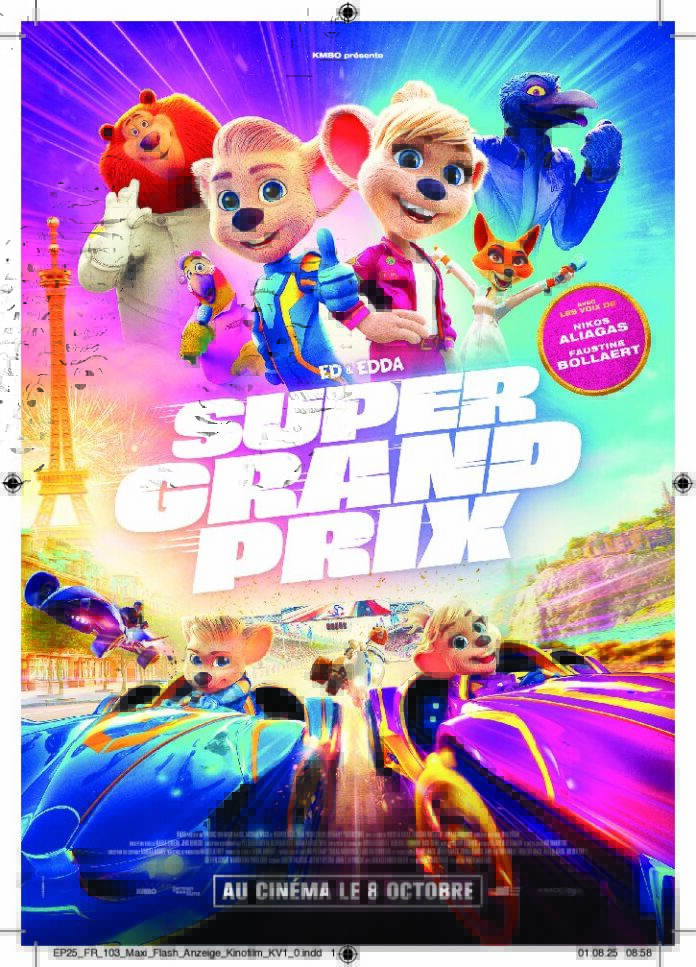 Le film d’animation SUPER GRAND PRIX, avec Ed & Edda dans les rôles principaux, fait la place belle à la vitesse et l’émotion. À l’affiche des cinémas, le long métrage viendra ravir les spectateurs avec des personnages charmants, une histoire captivante, de l’action et de l’humour. Pour interpréter les présentateurs de la course, le film réunit un casting exceptionnel et adoré par le public français ! Nikos Aliagas joue un commentateur déjanté et Faustine Bollaert une directrice de course espiègle. Des rôles que les deux personnalités ont pris énormément de plaisir à doubler. La bande son captivante du film est l’œuvre du compositeur allemand oscarisé Volker Bertelmann.