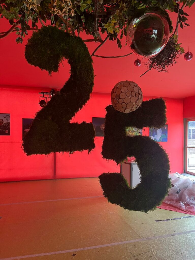 Habituellement assez simple, elle a été pimpée. Sur les murs, l’histoire de Folie’Flore est retracée à travers 24 photos, une pour chaque édition. Au centre, le nombre 25 est suspendu dans les airs : « Quand les gens vont entrer, ils vont se souvenir de toutes ces éditions auxquelles ils ont participé. L’idée de Folie’Flore c’est qu’on soit émerveillé, peu importe l’âge ».