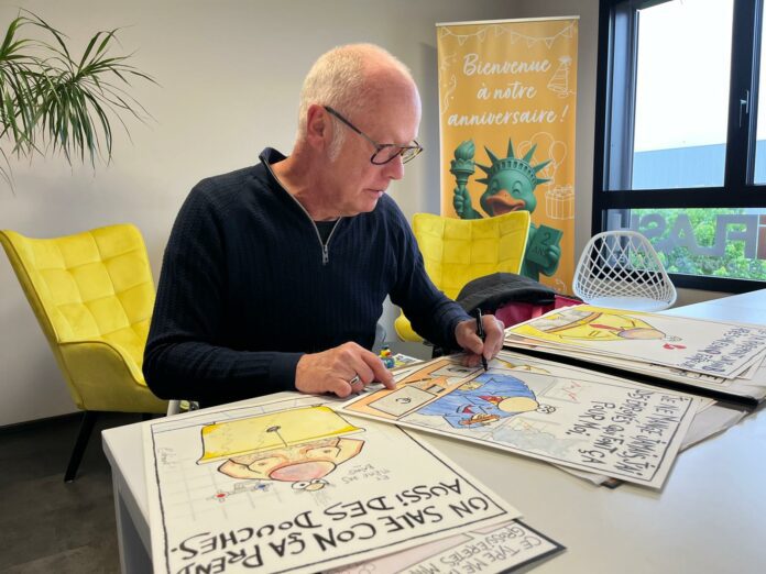 À partir de là, ces collaborations ont diminué. Toutefois, il continue d’exposer. Il a notamment fait le festival de BD et de vins, Bulles en raisin. « Je dessine aussi pour Amnesty International et pour une revue automobile », ajoute l’artiste de 64 ans.