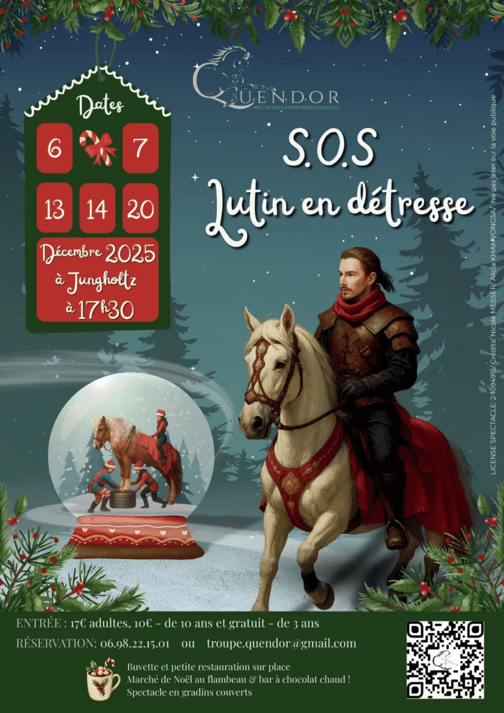 S.O.S Lutin en détresse propose une histoire simple mais efficace : « À quelques jours de Noël, rien n’est prêt : les lutins rêvassent […]. Quand tout semble perdu, chevaux et amis s’unissent pour rappeler une vérité : la magie de Noël ne brille que lorsqu’on la partage ». Figures, cascades et rires devraient être au rendez-vous de ce spectacle accessible aux petits comme aux grands.