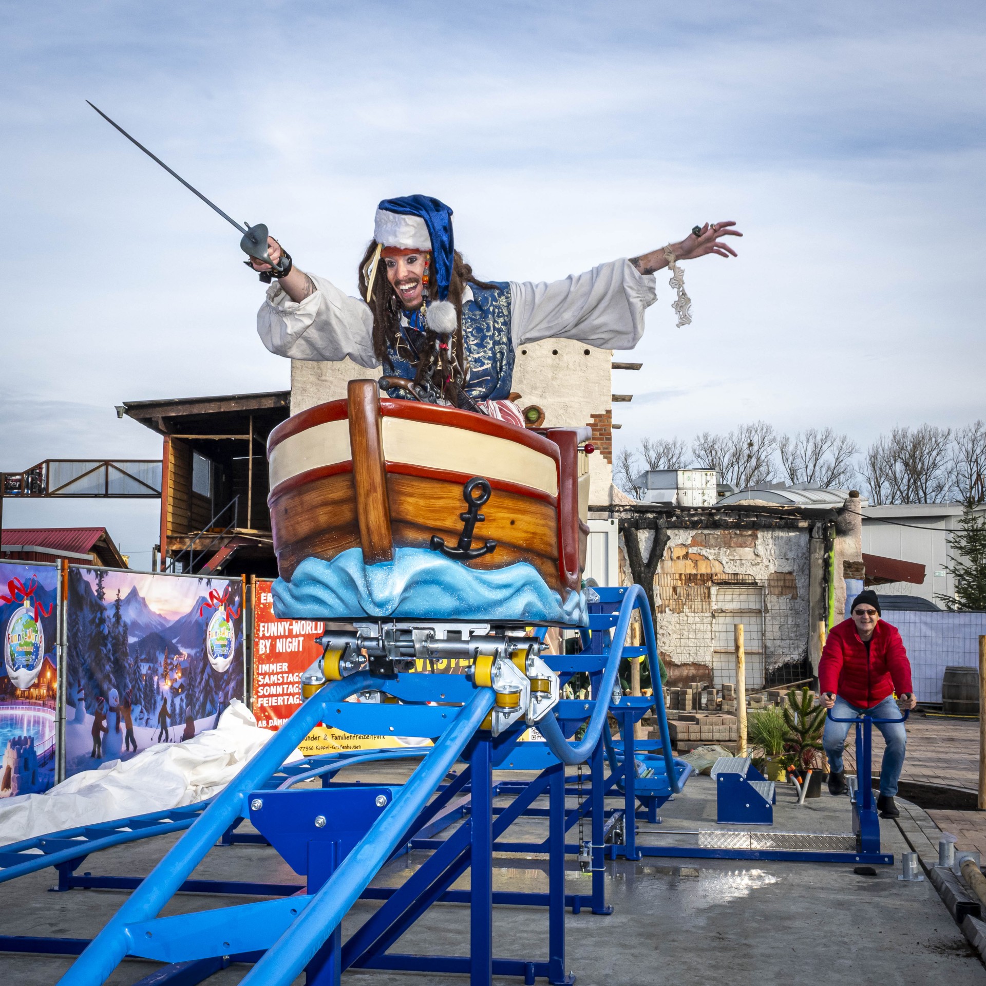 Pour ce faire, il vient d’inaugurer une toute nouvelle installation : le Capitano Pedalo, la plus petite montagne russe d’Allemagne. Il s’agit d’une petite gondole avançant sur des rails bleus grâce à la force musculaire. Ainsi, les parents peuvent propulser leurs enfants à 1,8 mètre de hauteur à l’aide d’un ergomètre, avant de les voir dévaler le parcours. L’attraction, qui fonctionne sans électricité, mesure 15 mètres de long et 4,5 mètres de large.