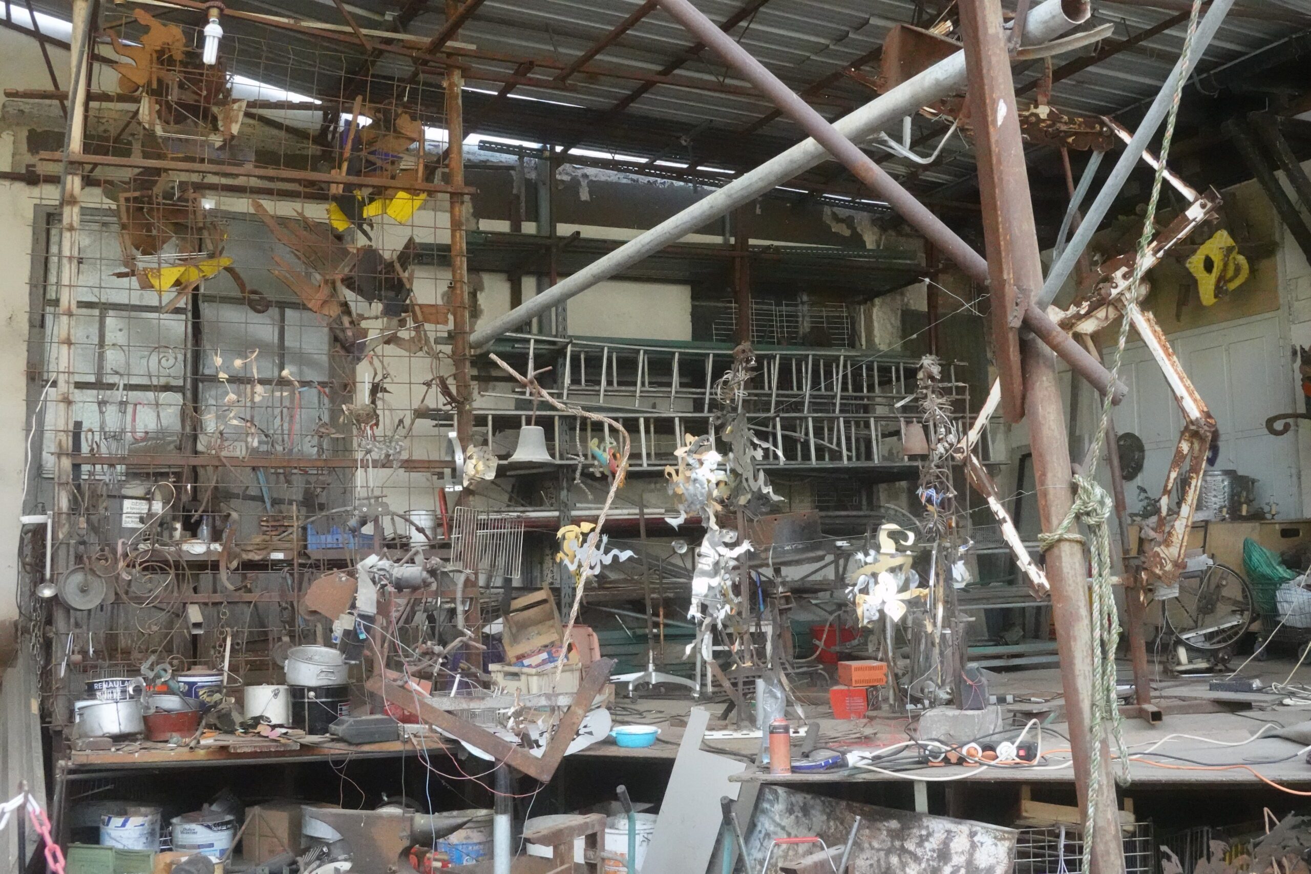 Oui, c’est de l’art, c’est ouvert au public et l’artiste rigole quand les visiteurs ricanent. Oui, c’est de la ferraille, c’est ce que chacun d’entre nous ne sait pas où jeter, et l’artiste (Daniel) rigole quand on lui chuchote « dépotoir », car c’est presque son nom. Et comme l’Art, ce sont des rencontres, lui s’amuse devant les yeux ébahis des visiteurs qui imaginent les chimériques automates démesurés de l’exposition dans leur jardin. Ouvrir les yeux, se débarrasser des idées toutes faites et admirer la banalité, c’est tellement simple. Et l’art c’est beau, il faut juste prendre le temps de regarder.