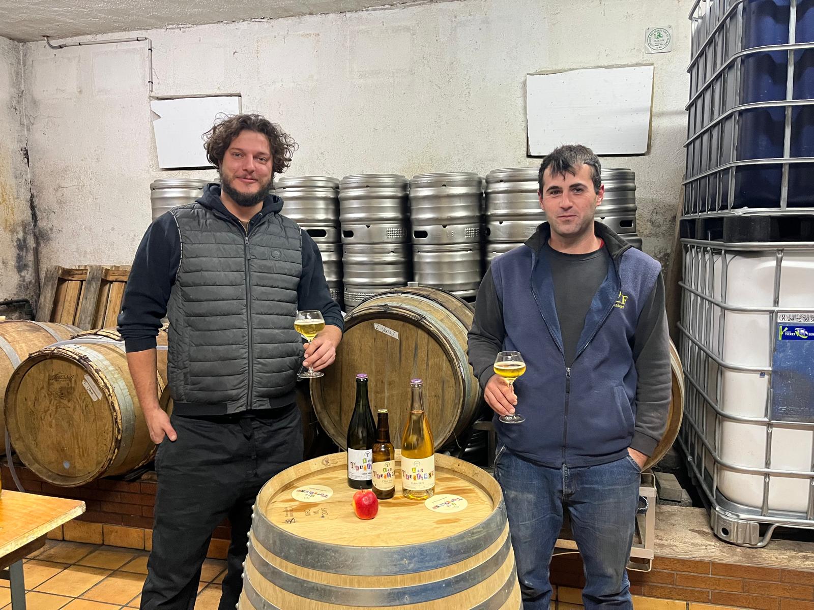 Gauthier Egler et Jules Meyer se connaissent depuis qu’ils ont 5 ans. Ensemble, ils ont fait les 400 coups. Le premier a rejoint le monde du vin à 16 ans, tandis que Jules, fils de viticulteurs, est né dedans. C’est après leurs études viticoles qu’un projet est né : faire du cidre made in Alsace. Leur marque, Les Trublions, a été créée il y a 2 ans. Ils ne sont pas les premiers mais au niveau local le marché n’est pas saturé, avec moins de 6 producteurs : « En Alsace, on a des tas de pommes et de vergers. Autant en faire quelque chose. Ensuite, le cidre et le vin, c’est deux méthodes semblables », justifie Gauthier.