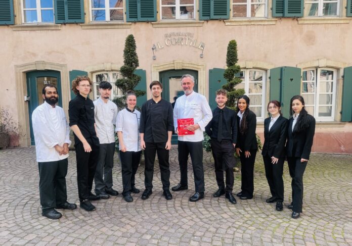 Installée dans une demeure du XVIe siècle, la maison cultive cet art de recevoir à l’italienne, entre chaleur et raffinement. Au fil des années, elle a tracé sa strada avec constance, obtenant une première étoile Michelin en 2007, puis une seconde en 2014, devenant ainsi le premier restaurant italien doublement étoilé Michelin en France – un véritable morceau de Dolce Vita au cœur de Mulhouse. Jean-Michel Feger en est l’âme et le fil conducteur, orchestrant une cuisine qui dialogue entre tradition et modernité, comme une balade entre trattoria et haute cuisine. Avec le menu « Avanti ! », il propose une invitation accessible, presque une passeggiata gourmande. Servi au déjeuner du mardi au vendredi, ce menu à 39 euros incarne une entrée en matière lumineuse, une parenthèse comme un air de vacances.