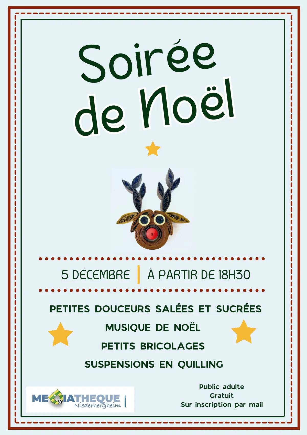 La médiathèque de Niederhergheim vous invite pour une soirée d’échanges, de partages, de créations et de dégustations autour de Noël.