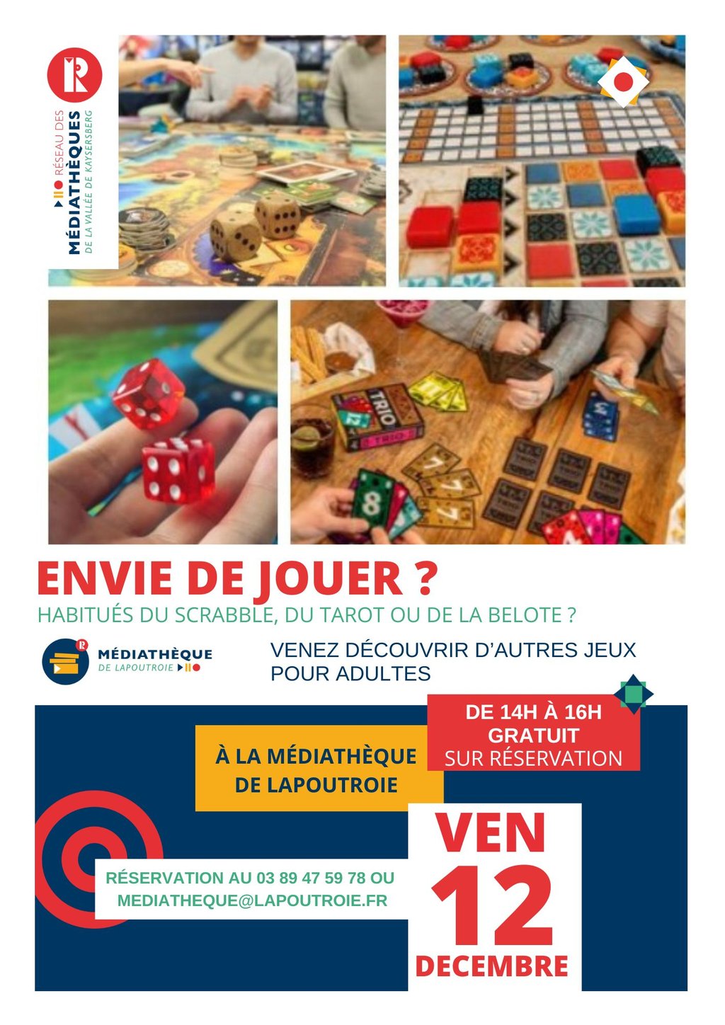 Envie de jouer en famille ou entre amis ? De découvrir de nouveaux jeux ? La médiathèque de Niederhergheim vous propose une matinée ludique et conviviale. Venez tester des jeux de société sur le