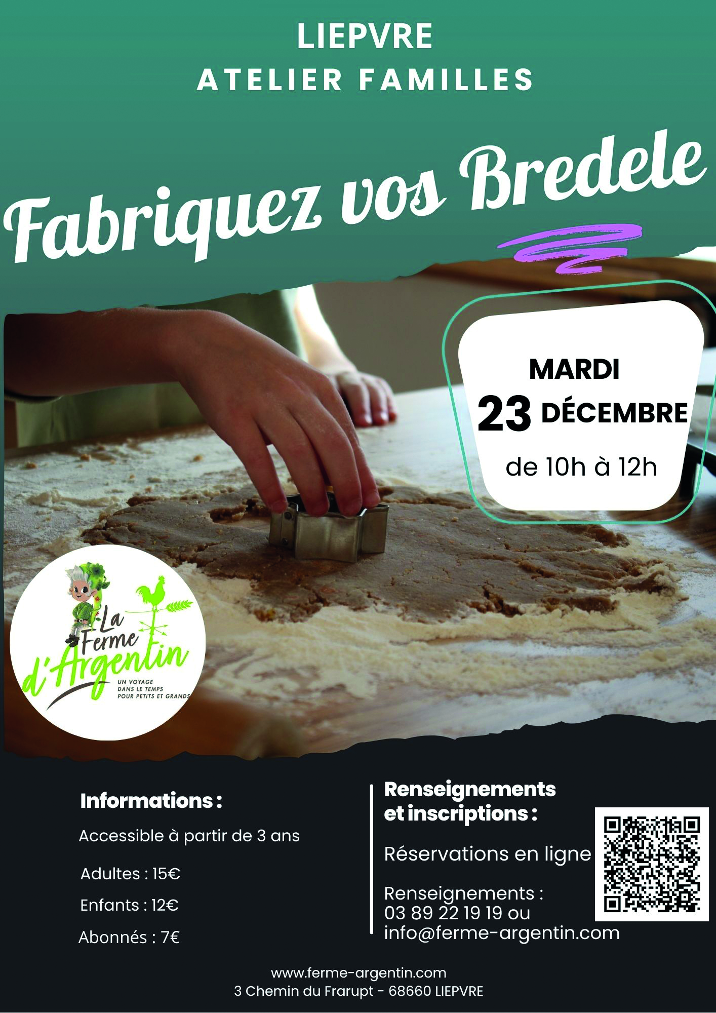 Réservation au 03 89 22 19 19 ou par mail info@ferme-argentin.com