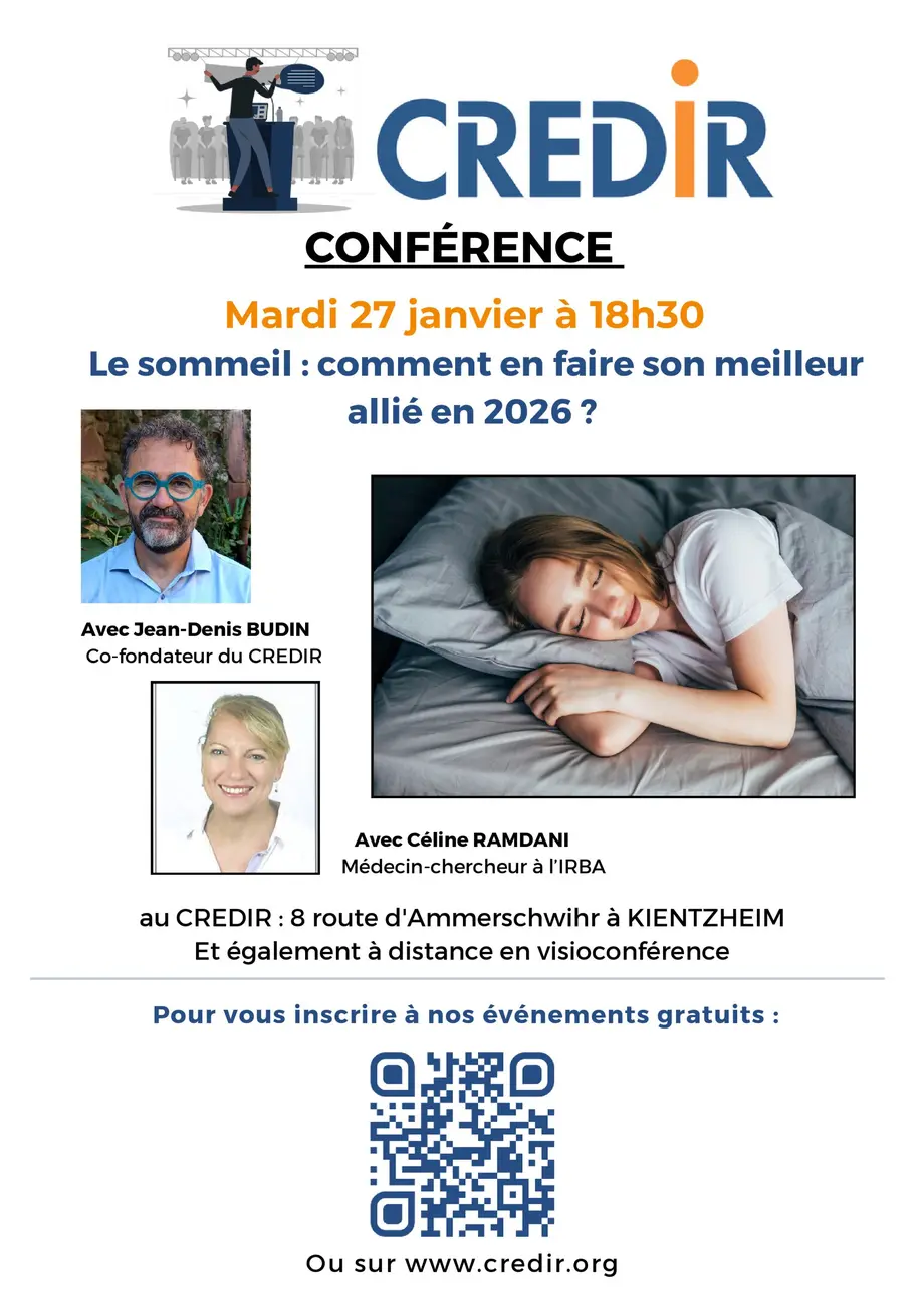 Jean-Denis BUDIN, rescapé d’un burnout grave très lié aux insomnies et le docteur Céline RAMDANI, responsable médicale du CREDIR, ainsi que plusieurs témoins, vous proposent une conférence interactive pour que 2026 soit une année où vous améliorez votre Qualité de Vie Globale grâce au sommeil.