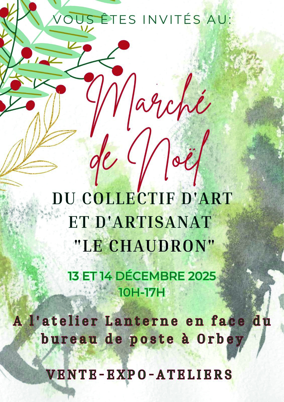 13dec13h0014h00Repeating EventOrbey. Marché de Noël Art et Artisanat « Le Chaudron »