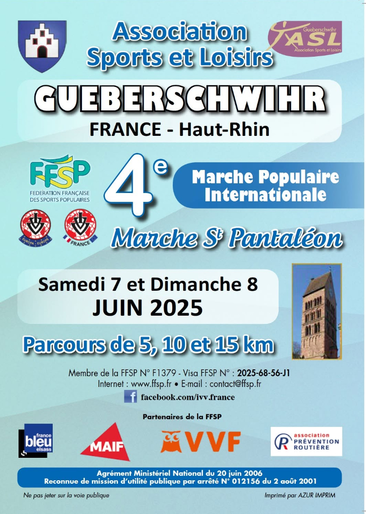 4ème Marche Populaire de Saint Pantaléon de Gueberschwihr – les 7 & 8 juin, en plein week-end de la Pentecôte ! Vivez un moment convivial, sportif et responsable lors de notre